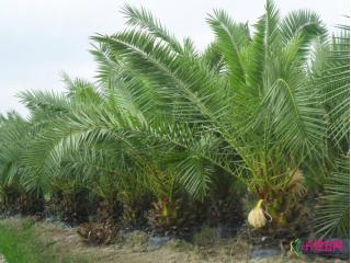 加拿利海枣又称加拿利枣椰、长叶刺葵,原产非洲加拿利岛,为棕榈科(palmae或Arecaceae)枣椰属(phoenix)高大常绿乔木。其单干粗壮。直立雄伟。树形优美舒展,茎干胸径常达50cm以上,具紧密排列的扁菱形叶痕而校为平不整;叶绿壮旺,羽片坚韧;树形张开呈半圆,远观台同撑开了的罗伞,富有热带风情,应用于公园造景、行道绿化,效果极好。其成龄树能耐-10℃,为棕榈科植物中耐寒最强的品种之一。