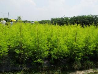 种名:黄金香柳[1] 学名:Melaleuca bracteata cv. 别名:千层金 科属:桃金娘科 白千层属 原产:新西兰、荷兰等濒海国家,编辑本段形态特征 黄金香柳常绿乔木,树高可达6-8米.具有顽强的生命力,抗盐碱、抗水涝、抗寒热、抗台风等自然灾害。是形态优美的彩色树种,具极高观赏价值,有金黄、芳香、新奇等特点。枝条柔软密集,随风飘逸,四季金黄,经冬不凋。黄金香柳根深,主干直立,枝条密集细长柔软,嫩枝红色,新枝层层向上扩展,金黄色的叶片分布于整个树冠,形成锥形,树形优美。叶片芳香宜人,编辑本段生长习性 喜光,适宜我国南方大部分地区栽培。黄金香柳生长快,2-3年可修剪成3米高的塔形,3-4年可培育成胸茎5-6cm的行道树。成年树树干可达15-20cm粗,树高6-8米,并形成冠幅3-5米的锥形。抗盐碱,抗风力强,编辑本段园林应用 可用于庭园景观、道路、小区绿化。编辑本段药用价值 气味芳香怡人.采其枝叶可提取香精,是高级化妆品原料,也可用其作香薰、熬水、沐浴,香气清新,舒筋活络,有良好的保健功效.