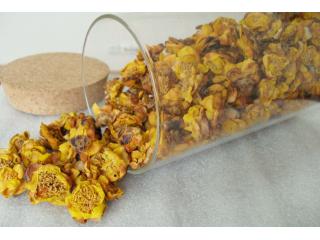 金花茶使用:取二-三朵干花,用100度开水泡浸,多次反复泡浸,如当天泡浸颜色很浓时,留作第二天继续泡浸至无色,然后取出花朵直接食用。
