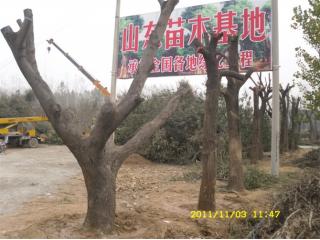 本基地常年对外销售直径8、10、12、15 18cm以及20cm、30和40公分的国槐,可以全冠、半冠截干,也可以带土球和裸根,完全根据客户的要求指树挖树,捆扎装车。合欢树白腊和法桐也是基地常年经营的项目。