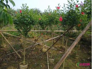 供应 单枝 单杆 大红花 扶桑花 朱槿 3公分左右袋苗 1千棵,高度2-2.5米,冠1.2-2米