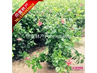 扶桑花H. rosa-sinensis别名朱槿、大红花、朱槿牡丹等。为锦葵科常绿大灌木。茎直立而多分枝,树冠远方形,高可达6。叶互生,阔卵形至狭卵形,长7~10厘米,具3主脉,先端突尖或渐尖,叶缘有粗锯齿或缺刻,基部近全缘,秃净或背脉有少许疏毛,形似桑叶。花大,有下垂或直上之柄,单生于上部叶腋间,有单瓣、重瓣之分;单瓣者漏斗形,通常玫瑰红色,重瓣者非漏斗形,呈红、黄、粉、白等色,花期全年,夏秋最盛