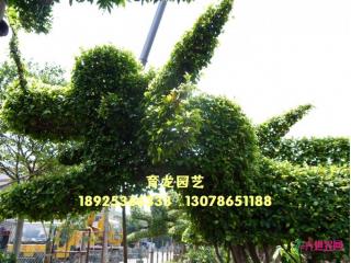 中山市东升育龙园艺专业生产特大细叶榕树造型(龙形榕树),本园艺场的龙身为原条细叶榕树(非切割拼装),十多年自然生长而成,利用园林技术人员独具匠心的构思、巧妙的技艺,采用栽培管理、整形修剪、搭架造型,创造出栩栩如生的龙型形象,具有很高的观赏价值。