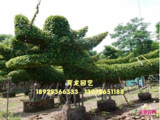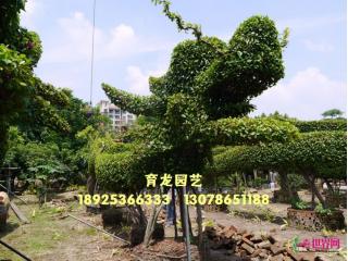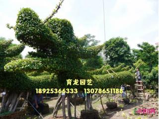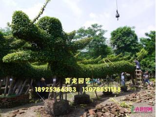 中山市东升育龙园艺专业生产特大细叶榕树造型(龙形榕树),本园艺场的龙身为原条细叶榕树(非切割拼装),十多年自然生长而成,利用园林技术人员独具匠心的构思、巧妙的技艺,采用栽培管理、整形修剪、搭架造型,创造出栩栩如生的龙型形象,具有很高的观赏价值。