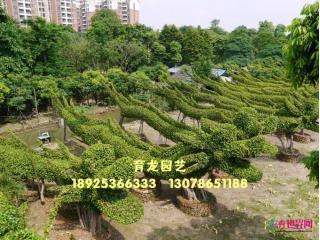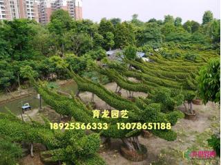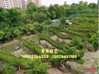 中山市东升育龙园艺专业生产特大细叶榕树造型(龙形榕树),本园艺场的龙身为原条细叶榕树(非切割拼装),十多年自然生长而成,利用园林技术人员独具匠心的构思、巧妙的技艺,采用栽培管理、整形修剪、搭架造型,创造出栩栩如生的龙型形象,具有很高的观赏价值。