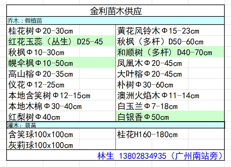 (广州南站旁)供应各种规格精品苗木,1...