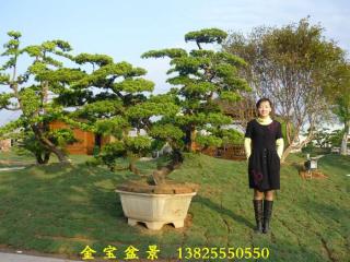 真柏 属柏科,圆柏属。常绿灌木,枝干常屈曲匍匐,小枝上升作密丛状。刺形叶细短,通常交互对生或3叶轮生,长3~6毫米,紧密排列,微斜展。球果圆形,带蓝绿色。   主要栽培品种   1.密生偃柏,植株分枝紧密,鳞形叶淡绿色,刺形叶暗绿色,顶端粉绿色。   2.粉羽偃柏,植株矮生,小枝细瘦,略呈羽状,叶有白粉。落千丈3.淡绿偃柏,植株矮小,小枝紧密丛生,叶淡绿色。   分布于我国东北张广才岭,海拔1400米山地。苏联、日本也有分布。日本称\"槙柏\",学名Juniperus chinensisvar.Sargentii Henry。   喜光,略耐荫,耐寒性强,亦耐瘠薄,能生于岩石缝中;对土壤要求不严,中性土、石灰性土均能适应。但以肥沃、深厚及含腐殖质丰富的土壤最宜。   (二)取材与培育措施   人工繁殖:真柏通常以扦插或压条法繁殖。插穗以一年生嫩枝为佳,穗长10~15厘米,剪去中部以下小枝,插深1B2;苗床用腐叶土掺拌沙土,宜肥沃疏松、排水良好。插后浇透水,随时搭棚遮荫,2~3月后即可生根。次年春季进行分栽移植,培育大苗。真柏常匍匐地面生长,不定根随之发生,故亦可以压条法繁殖。用扁柏或侧柏苗作砧木行嫁接繁殖,也易成活。   (三)上盆过程   选盆:真柏宜用紫砂陶盆,大型盆景亦可用凿石盆。盆的形状以中深的长方形、椭圆形、正方形、圆形、六角形等为宜;悬崖式可用深千筒盆。 用土:真柏宜用肥沃疏松的中性土或石灰性土。盆栽常用腐殖土掺木炭屑或拌沙混合使用。   栽种:宜在春季3~4月进行,秋季亦可。栽种时要注意在盆孔处用瓦片垫空,以利透水。上盆栽种后,第一次水应浇足,以后稍干再浇。   (四)整姿   技术加工:真柏的造型加工以攀扎为主,修剪为辅。一般以金属丝攀扎较方便,伸屈自如,线条流畅,并可将枝干进行扭旋,以显示古柏之雅趣。攀扎时重点将主要枝干造型扎好,小枝可攀扎也可修剪。   真柏的局部枝干可以作成枯枝、枯干,即所谓\"舍利干\",模仿自然界树木因长期遭受风雨雷电袭击,而形成某些枝干劈断,树皮剥落的现象,从而产生古雅奇特的效果。制作时,可先选定某些枝干(常常利用本来不需要的枝干),剪除小枝叶,从基部起剥除树皮,可用刀削,也可用手指剥。枝梢处须削成自然断折状,力求不露出人工痕迹。最后在剥去树皮的枝干上涂以石灰硫磺合剂,以防止腐朽。\"舍利干\"的位置安排很重要,它对整株柏树造型起着调节疏密虚实和增加对比变化的作用,故须仔细斟酌。\"舍利干\"可在树木的顶端,也可在枝干的中部,根据造型需要而定。   树形:自然界生长的古柏往往呈虬曲状,真柏的树形也可制作成曲干式,其次为悬崖式、斜干式和卧干式。曲干式的主干须曲折多变,特别须注意弯曲的方向和弯曲的程度的变化。悬崖式、斜干式和卧干式的主干也不可太直,而宜带几分弯曲。   真柏的枝叶宜作成团簇状,并可适当下垂。此外,真柏的局部枝干还可制作成\"舍利干\"。