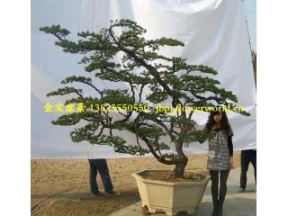 真柏 属柏科,圆柏属。常绿灌木,枝干常屈曲匍匐,小枝上升作密丛状。刺形叶细短,通常交互对生或3叶轮生,长3~6毫米,紧密排列,微斜展。球果圆形,带蓝绿色。   主要栽培品种   1.密生偃柏,植株分枝紧密,鳞形叶淡绿色,刺形叶暗绿色,顶端粉绿色。   2.粉羽偃柏,植株矮生,小枝细瘦,略呈羽状,叶有白粉。落千丈3.淡绿偃柏,植株矮小,小枝紧密丛生,叶淡绿色。   分布于我国东北张广才岭,海拔1400米山地。苏联、日本也有分布。日本称\\\"槙柏\\\",学名Juniperus chinensisvar.Sargentii Henry。   喜光,略耐荫,耐寒性强,亦耐瘠薄,能生于岩石缝中;对土壤要求不严,中性土、石灰性土均能适应。但以肥沃、深厚及含腐殖质丰富的土壤最宜。   (二)取材与培育措施   人工繁殖:真柏通常以扦插或压条法繁殖。插穗以一年生嫩枝为佳,穗长10~15厘米,剪去中部以下小枝,插深1B2;苗床用腐叶土掺拌沙土,宜肥沃疏松、排水良好。插后浇透水,随时搭棚遮荫,2~3月后即可生根。次年春季进行分栽移植,培育大苗。真柏常匍匐地面生长,不定根随之发生,故亦可以压条法繁殖。用扁柏或侧柏苗作砧木行嫁接繁殖,也易成活。   (三)上盆过程   选盆:真柏宜用紫砂陶盆,大型盆景亦可用凿石盆。盆的形状以中深的长方形、椭圆形、正方形、圆形、六角形等为宜;悬崖式可用深千筒盆。 用土:真柏宜用肥沃疏松的中性土或石灰性土。盆栽常用腐殖土掺木炭屑或拌沙混合使用。   栽种:宜在春季3~4月进行,秋季亦可。栽种时要注意在盆孔处用瓦片垫空,以利透水。上盆栽种后,第一次水应浇足,以后稍干再浇。   (四)整姿   技术加工:真柏的造型加工以攀扎为主,修剪为辅。一般以金属丝攀扎较方便,伸屈自如,线条流畅,并可将枝干进行扭旋,以显示古柏之雅趣。攀扎时重点将主要枝干造型扎好,小枝可攀扎也可修剪。   真柏的局部枝干可以作成枯枝、枯干,即所谓\\\"舍利干\\\",模仿自然界树木因长期遭受风雨雷电袭击,而形成某些枝干劈断,树皮剥落的现象,从而产生古雅奇特的效果。制作时,可先选定某些枝干(常常利用本来不需要的枝干),剪除小枝叶,从基部起剥除树皮,可用刀削,也可用手指剥。枝梢处须削成自然断折状,力求不露出人工痕迹。最后在剥去树皮的枝干上涂以石灰硫磺合剂,以防止腐朽。\\\"舍利干\\\"的位置安排很重要,它对整株柏树造型起着调节疏密虚实和增加对比变化的作用,故须仔细斟酌。\\\"舍利干\\\"可在树木的顶端,也可在枝干的中部,根据造型需要而定。   树形:自然界生长的古柏往往呈虬曲状,真柏的树形也可制作成曲干式,其次为悬崖式、斜干式和卧干式。曲干式的主干须曲折多变,特别须注意弯曲的方向和弯曲的程度的变化。悬崖式、斜干式和卧干式的主干也不可太直,而宜带几分弯曲。   真柏的枝叶宜作成团簇状,并可适当下垂。此外,真柏的局部枝干还可制作成\\\"舍利干\\\"。