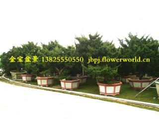 选盆:真柏宜用紫砂陶盆,大型盆景亦可用凿石盆。盆的形状以中深的长方形、椭圆形、正方形、圆形、六角形等为宜;悬崖式可用深千筒盆。