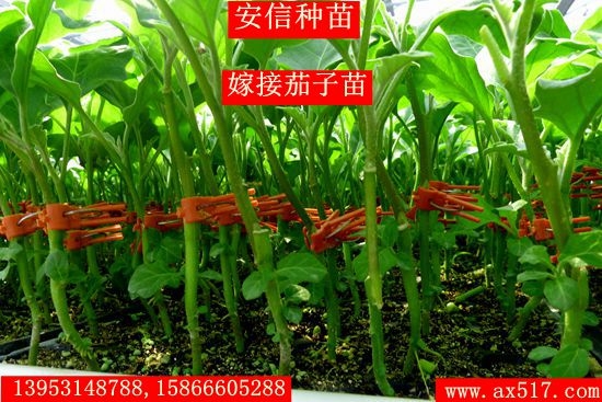 安信嫁接茄子苗:根系再生能力强,幼苗株高18-20厘米,6-7片叶,门茄有70%以上显蕾,茎粗壮,紫色,根系发达。坐果功能强大,长势旺盛,抗病能力强。果实果色油黑亮丽,外表美观,果实硬度比较好,耐运输,四季都能种植,商品性非常好。