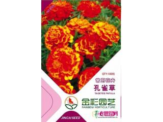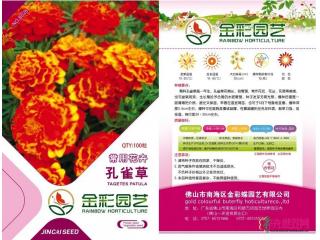 孔雀草种子的每克粒数在290~350之间。在长江中下游地区的保护地条件下,一年四季均可播种。但由于用花条件的限制,以“五一”、“国庆”两个节日的用花量最大。再由于孔雀草的播种要求气温高于15℃(或有加温保温条件),因此长江中下游一带的播种期一般在11月至8月。气候暖和的南方可以一年四季播种;在北方则流行春播。如果是在早春育苗,应注意确保一定的生长温度,尽量避免生长停滞。播种宜采用较疏松的人工介质,床播、箱播育苗,有条件的可采用穴盘育苗。介质要求pH值在6.0~6.2(稍高于其他品种),EC值<0.75,经消毒处理,播种后用蛭石稍稍覆盖。孔雀草的发芽适温22~24℃,发芽时间5-8天。