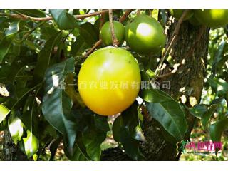 黄金果又名雅美果、亚美果、黄晶果、加蜜蛋黄果,成年树高4至16米,叶互生,单叶簇生枝端。花两性,单生或数朵丛生叶腋处,每结果枝开花20至280朵,浆果卵圆形或圆球形,柱头宿留,直径6至12厘米,果100克至600克,大者可达1500克,幼果绿色,成熟时黄色,果皮光滑,革质厚约5毫米。