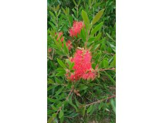 桃金娘科常绿小乔木,由最耐寒的高山红千层和美丽的多花红千层杂交而成,盛花期4.6.8.10.12月,耐涝.耐盐碱,大树可耐零下10-15度低温,在黄河以南地区可营造南国风光,火树红花,一串串红色瓶刷子,适生范围比普通红千层大,生长速度快,小苗两年开花,市场潜力大。