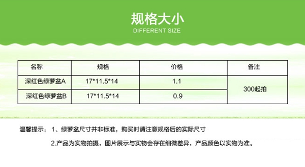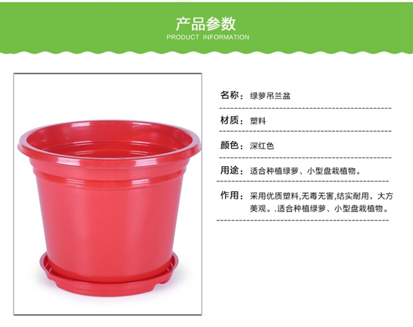 采用优质塑料,无毒无害,结实耐用,大方美观。.适合种植绿萝、小型盘栽植物。