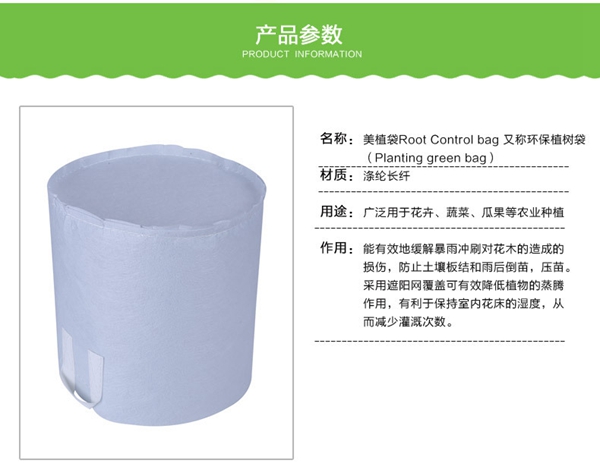美植袋Root Control bag又称环保植树袋(Planting green bag),可以造成自然的断根效果,移植成效高。