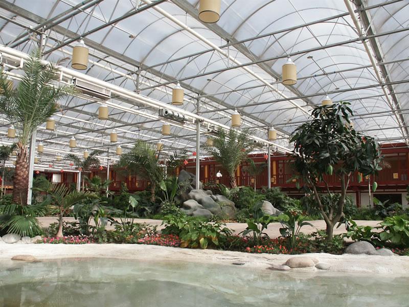 生态餐厅温室多为大跨度的温室结构,建造时要结合温室内的功能分区而定。明确了功能定位后,才能开始建造。
