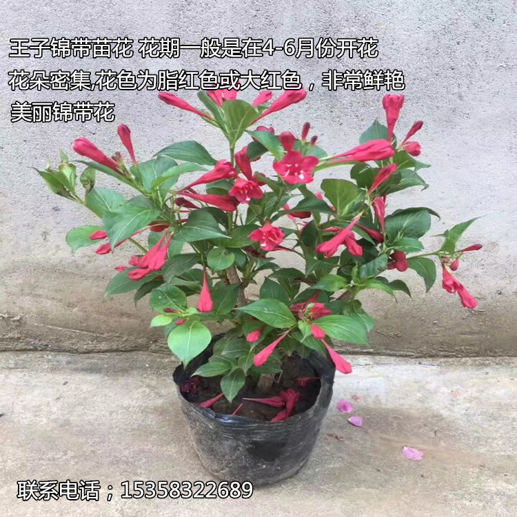 红王子锦带为忍冬科,夏初开花,花朵密集,花冠胭脂红色,艳丽悦目,开花盛期从5月到7月(长江以南为4月上旬-7月上旬),花序到10月份仍陆续不断。修剪一次,发一次芽,花更旺。树形格外美观,是锦带花的换代品种,具有很高的观赏价值。