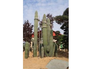 仙人掌科摩天柱属,高大树状,高达12m或更高,茎干直径1 m,具棱10~16,茎被白霜。初期有刺1O~20,以后增至50或更多,针状至锥形,白至黑色,上部刺座无刺。花白色。