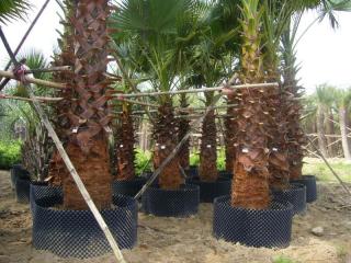 控根器是一种新兴的容器,用于大树种植用。控根育苗容器侧壁凸凹相间、外部突出的顶端开有气孔,当种苗根系向外向下生长接触到空气(侧壁上的小孔)或内壁的任何部位时,根尖则停止生长,接着在根尖后部萌发出3个新根继续向外向下生长,极大地增加了短而粗的侧根数量。使用控根器的苗木主根不会再长而是增加虚根。