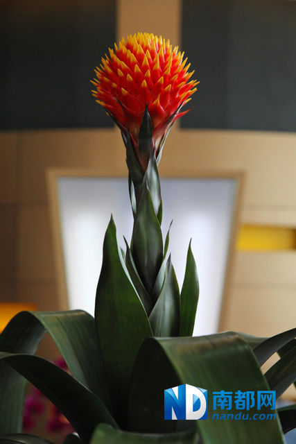 南都记者在现场看到,一盆叶子颜色葱绿,形阔如伞的植物顶端,开出黑色花朵,花瓣中间伸出长近半米的“胡须”。广州市花博园总经理助理赵海平介绍,这盆植物叫做箭根薯,因为整个花从上面看形似老虎的面孔,又被称作“老虎须”,是三级保护植物,也是参选年花中的“高富帅”。但市民须留意的是,这一植物有毒,不能食用。