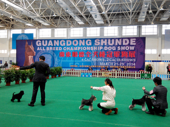 花卉世界网讯:为期三天的2014年广东顺德全犬种冠军狗展暨第三届若鲤大赛在广东省佛山市顺德陈村花卉世界隆重开幕。名犬与纯种鲤鱼齐亮相,虽然天气转凉,却无法影响人们观展的热情。