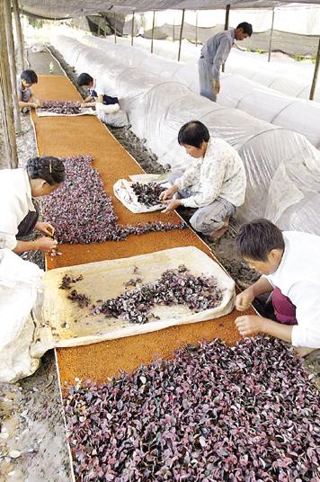 新街苗农拓展外包空间,在周边镇街包地建立苗圃。图为苗农在大棚里育苗。